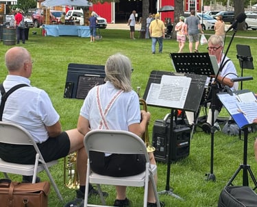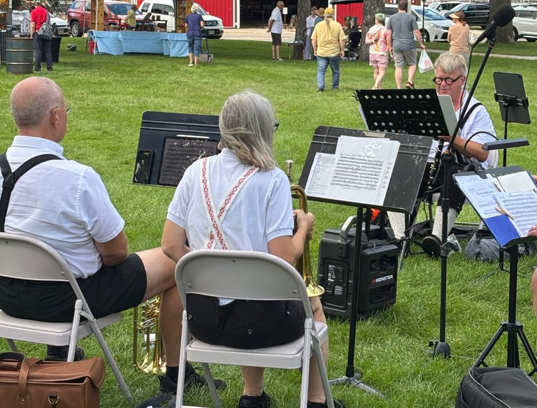all local professionals who enjoy playing traditional German music on wind instruments: Clarinets, Flugelhorns, Euphoniums and Tuba.